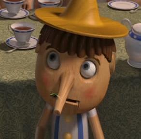 Pinocho es uno de los protagonista de la saga Shrek. Sueña con ser un niño de verdad, y cada vez que dice mentiras le crece la nariz. Su posible amigo tambien podría ser El Hombre de Jengibre