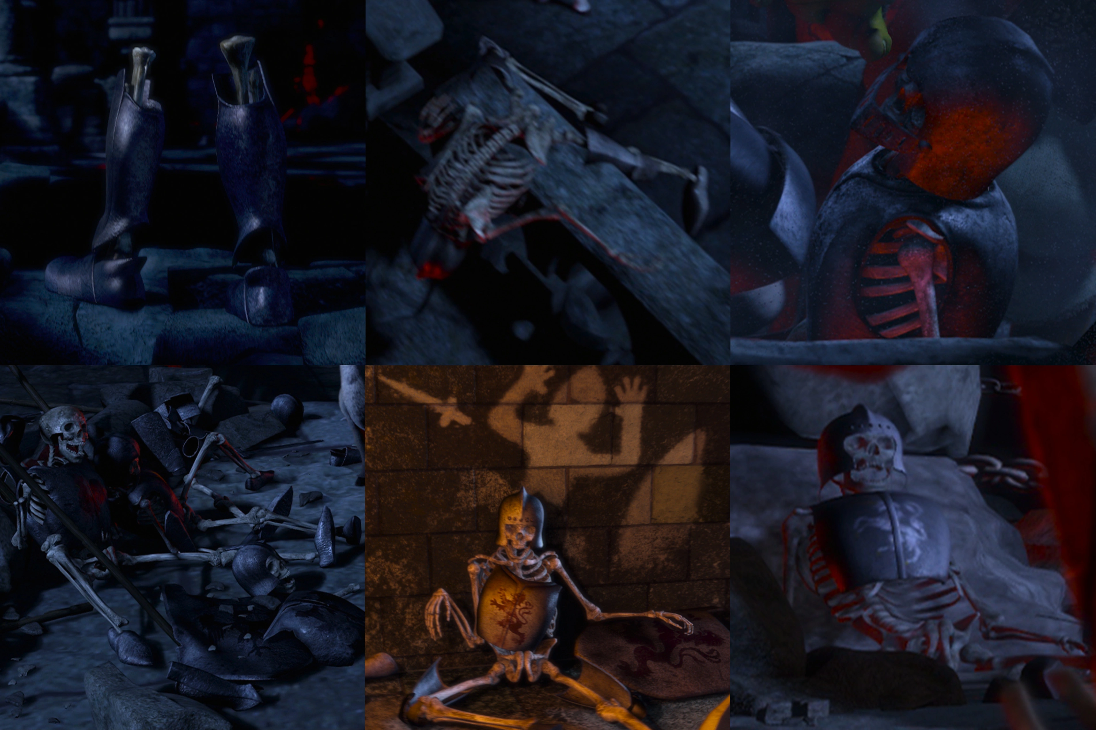 - The Far Far Away catacombs/sewers are littered with skulls.