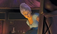 Fairy Godmother appears as a zombie in addition to other deceased and non-deceased villains in the series, such as son Prince Charming, Rumpelstiltskin, and Lord Farquaad. Except for the growl she makes when she emerges from the ground, she has no lines in the short film. Here, the Fairy Godmother wears a pink dress instead of the usual blue dress. She is voiced by Pinky Turzo.