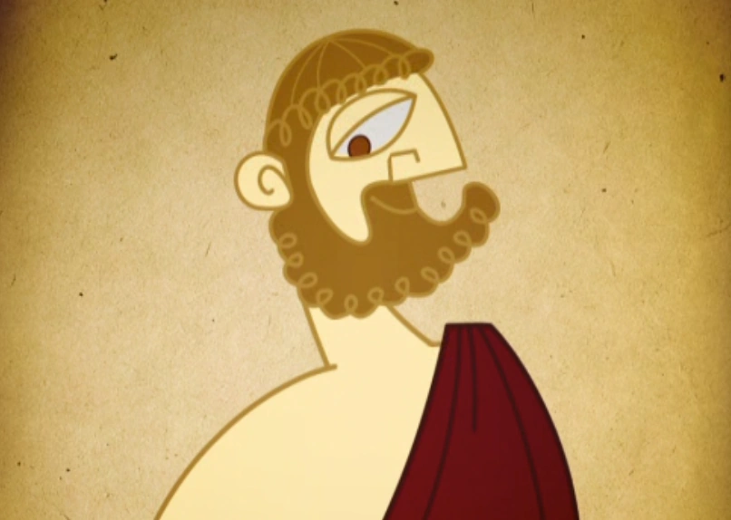 In one of the storybook animations, Prometheus arrives to show a group of humans fire that he stole from the gods. He snaps his fingers, which makes the fire grow, bringing amazement to the humans.