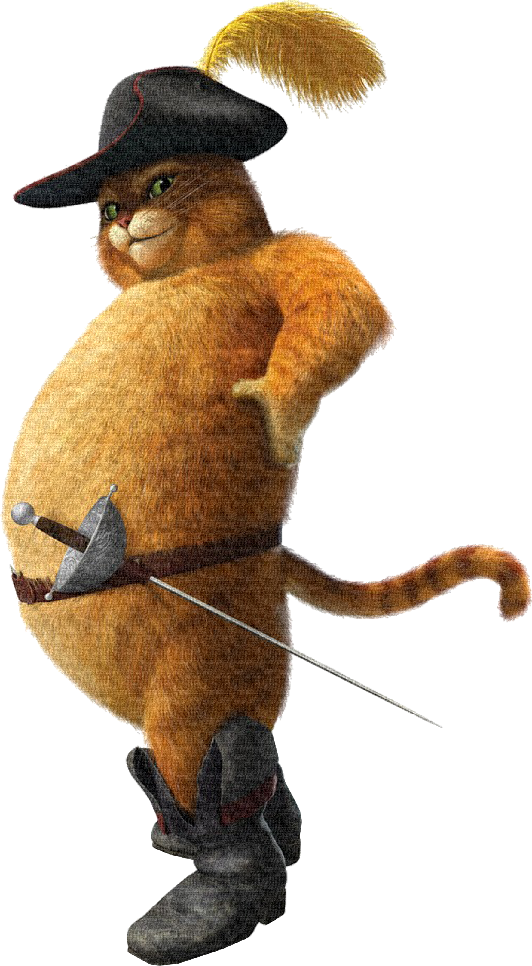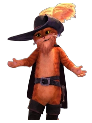 Puss in Boots, often referred to as just Puss (re-christened Pickles), briefly, is a ginger-striped cat that is skilled with a sword and whose name is derived from the hat and boots he wears. He first appeared as a bounty hunter but later became Shrek's faithful sidekick, until leaving to become the "fearless hero" he always believed himself to be.