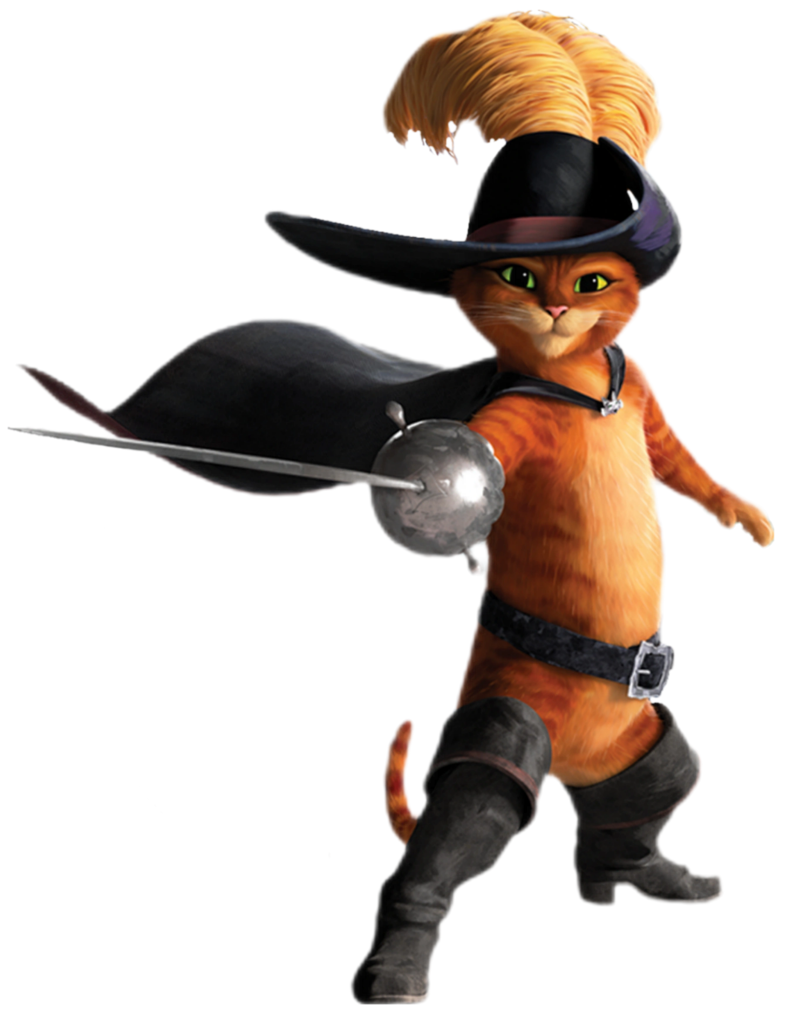 Loosely based on the fairytale character Puss in Boots, as well as being a pseudo-parody of Zorro- he is a smooth-talking cat with a Spanish accent, usually wearing a cavalier's hat, a belt with a sword, a small black cape, and small Corinthian boots. Puss first appears as a supporting character in Shrek 2, much like Donkey in the first film. He often overpowers his enemies by distracting them with his "Cute Eyes". He also exhibits common cat behavior such as the fear of water, coughing up hairballs and chasing spotlights. Usually resulting in his defeat or capture.