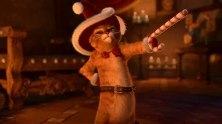 Puss tells the story of Santa Claus as a smooth Spanish cat (similar to himself). He is distracted from telling the tale when he sees a glass Christmas tree ornament and begins batting at it. When he realizes what he was doing, he walks away muttering "I have shamed myself". Later, when Shrek explains that he never celebrated Christmas before and wanted it to come right, Puss tells his friend "Christmas just comes".