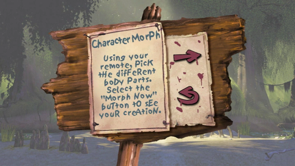 As the title suggests, it is a morphing game where the player can combine body parts of the four main Shrek characters to create a new form. Each combination comes with a different backdrop from the movie.